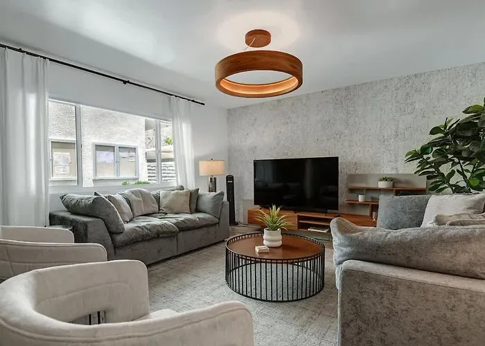 De Palm Springs est accessible en moins de 10 minutes en voiture et les attractions naturelles comme le Parc Baristo sont à 25 minutes à pied. Cet établissement Palm Canyon Modern Bungalow - Alice Lodging se trouve à 150 mètres de Feel Good Spa et à 450 mètres de Parking. Vous pourrez également visiter le Parc aquatique Wet'n'Wild Palm Springs, qui est dans une zone de 4 km.